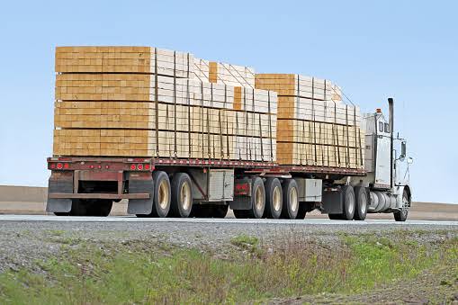 formed concrete items, lumber, construction materials, large beams, and trusses